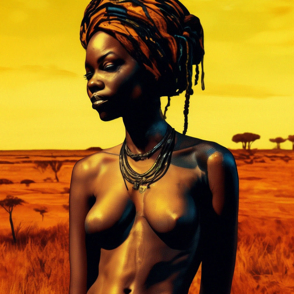AI, kamera ön görüşe, FDiame ve k4sp14 ile tamamen çıplak bir Afrikalı köle kızı